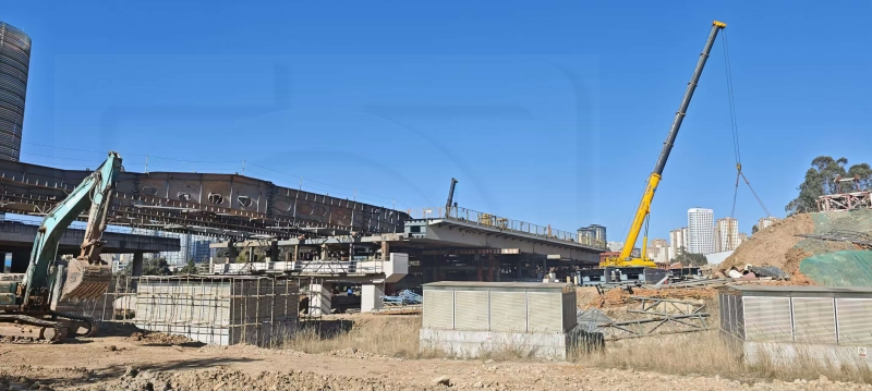 龙溪路大桥第2跨~第3跨钢箱梁顶推,是整个大桥建设的关键施工节点,施工难度突出、安全要求严苛。该段落不仅上跨昆明地铁2号线北部汽车客运站站点,且道路纵坡约5%,加之施工场地极度受限,多重工况叠加下,对钢箱梁顶推的精度控制、受力平衡及施工工艺提出了极高要求,也是设计阶段针对顶推施工重点攻克的技术难点。